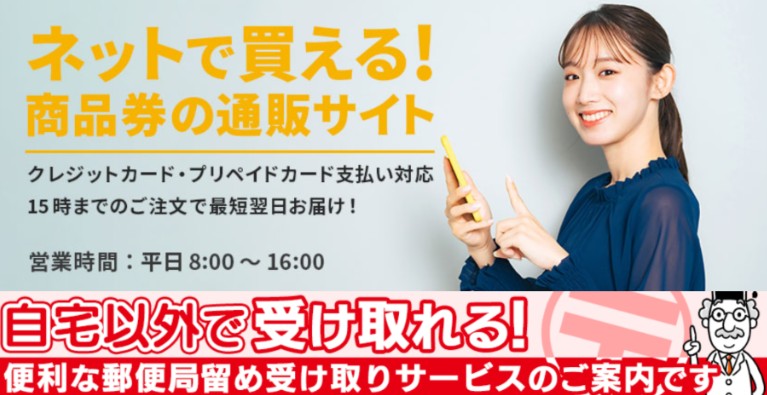安心・安全にクレジットカードで直接商品券が購入できます。